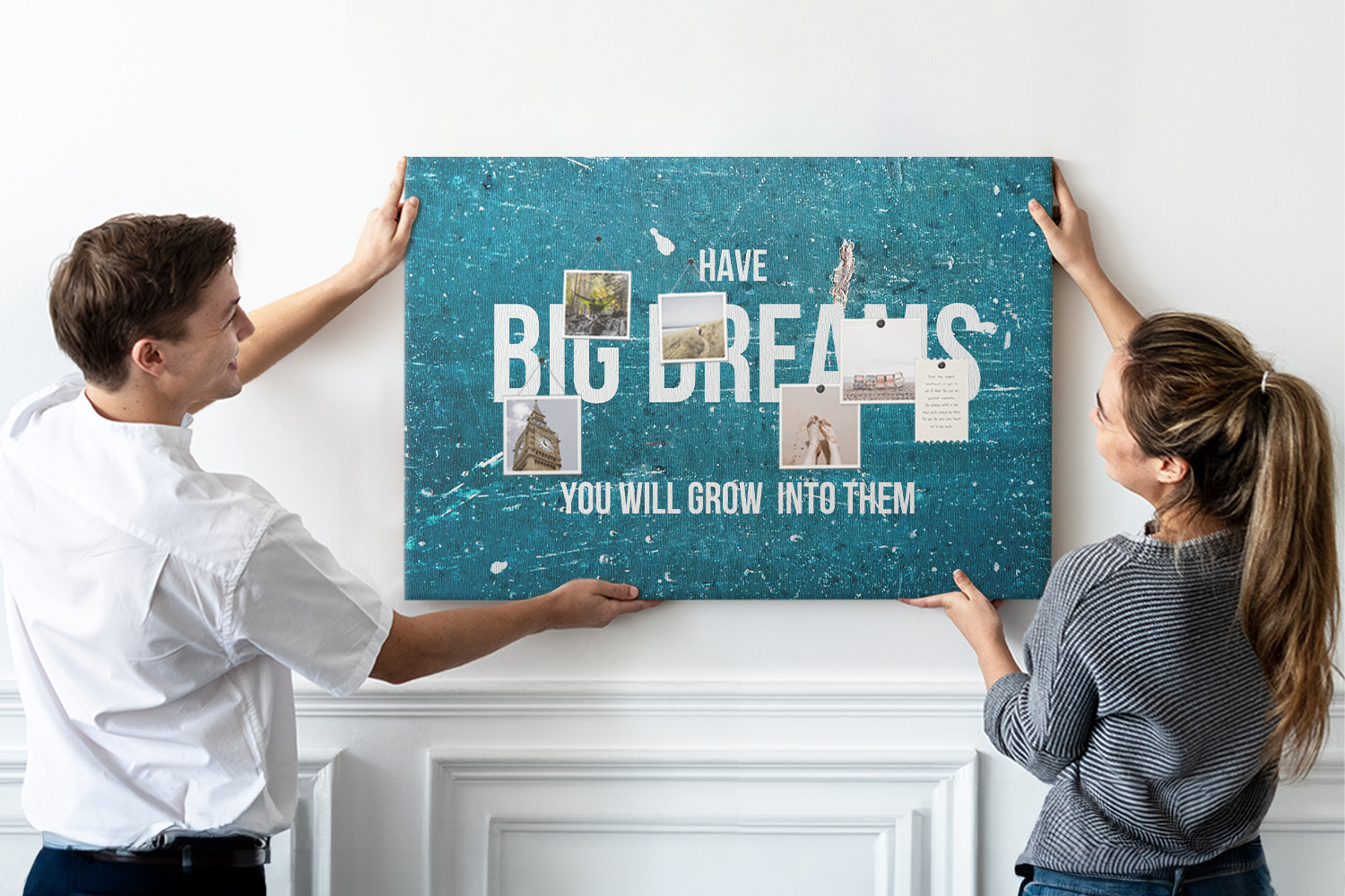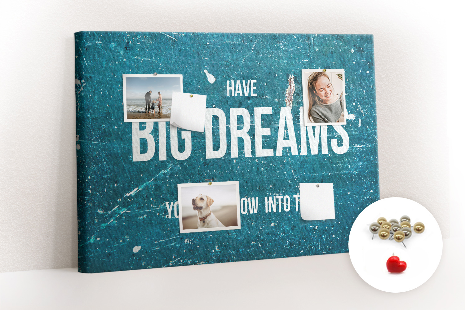 Nadruk na tablicy korkowej jest dostosowywany do Twoich preferencji. Możesz wybrać spośród szerokiej gamy wzorów, motywów, kolorów oraz rozmiarów.