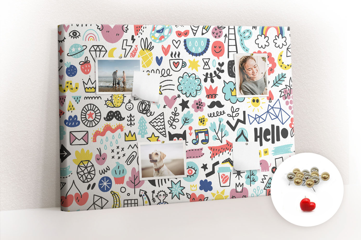 Nadruk na tablicy korkowej jest dostosowywany do Twoich preferencji. Możesz wybrać spośród szerokiej gamy wzorów, motywów, kolorów oraz rozmiarów.