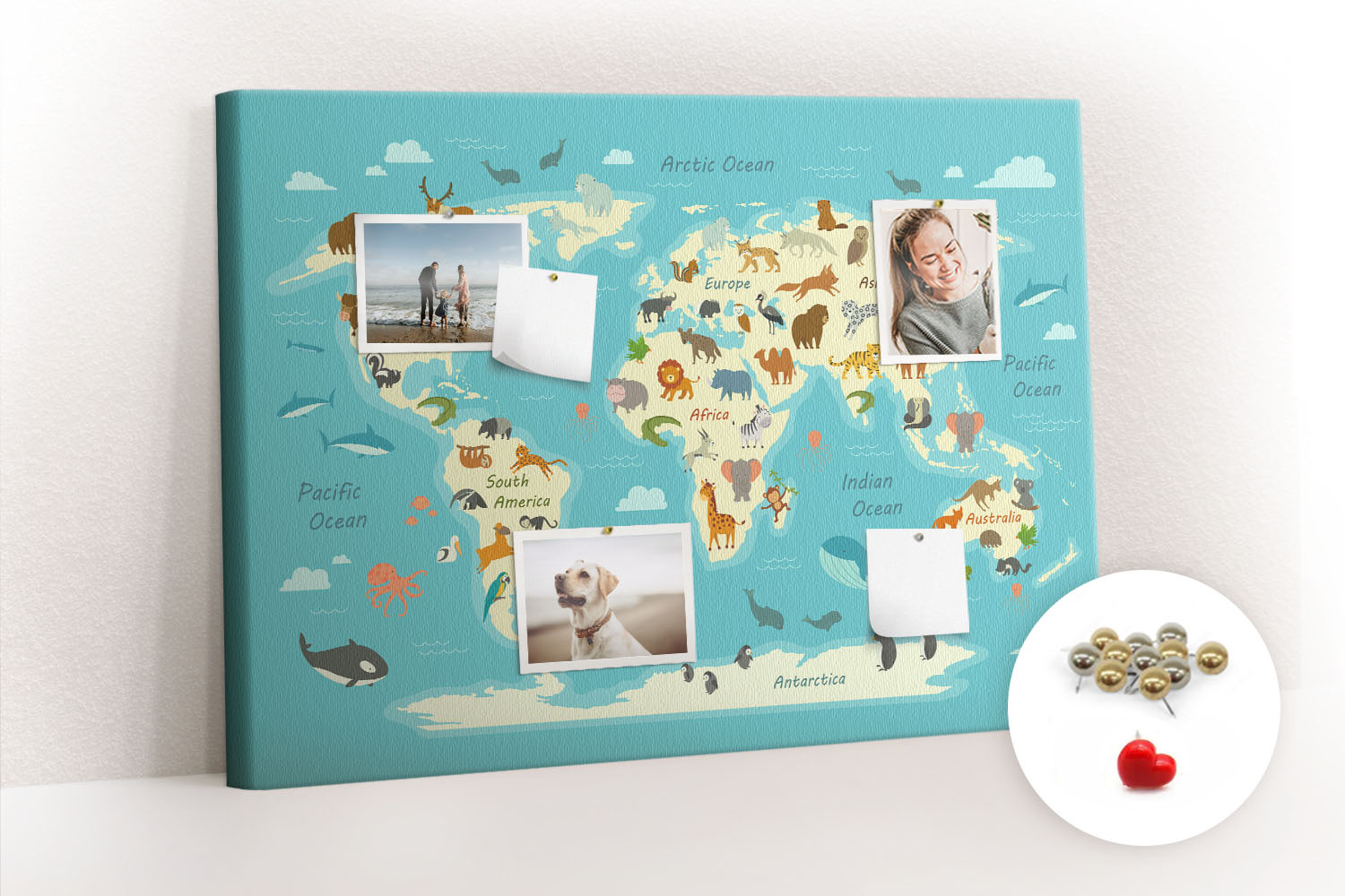 ? Kupując produkt otrzymujesz tablicę z pinezkami pokazanymi na miniaturce.