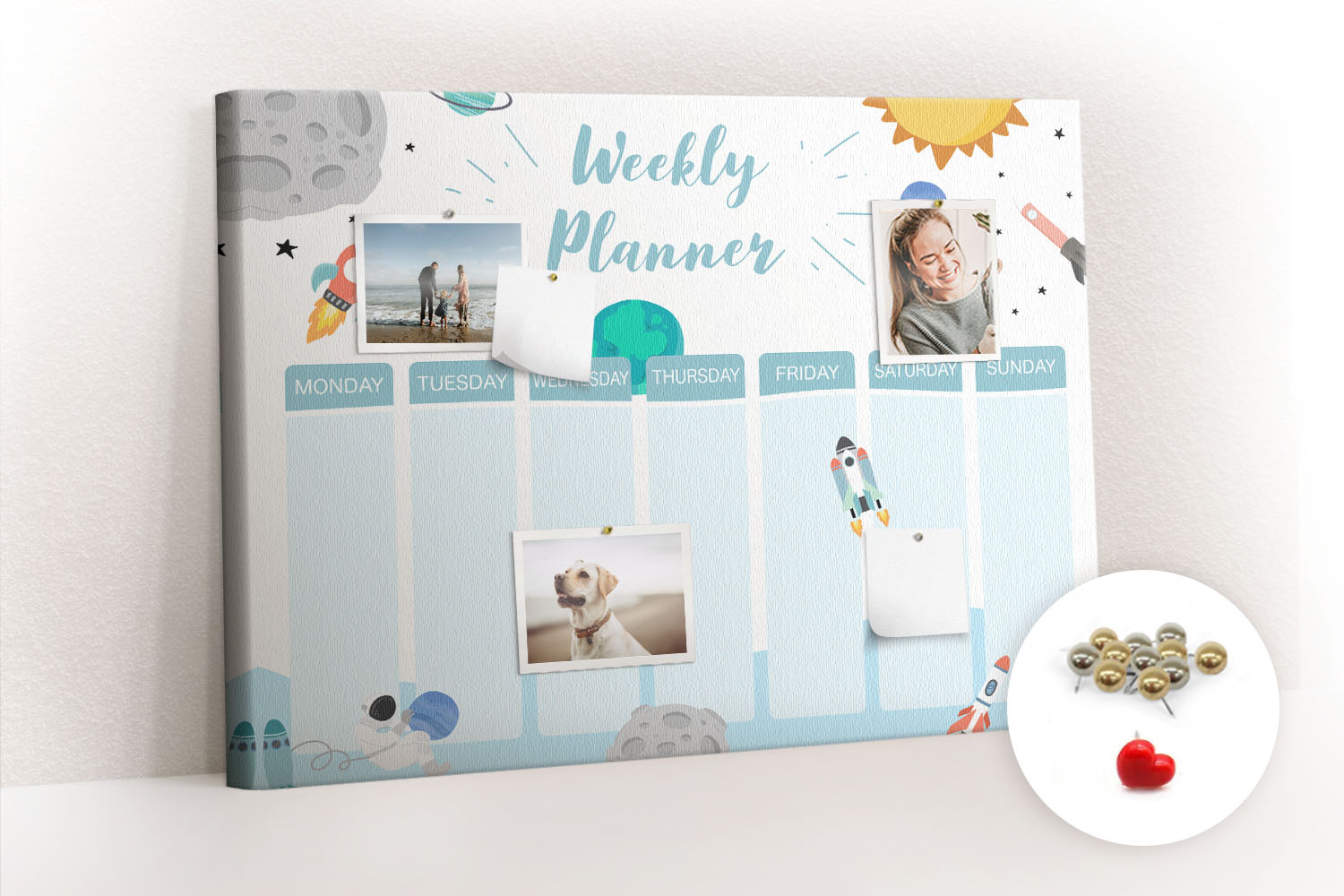 Nadruk na tablicy korkowej jest dostosowywany do Twoich preferencji. Możesz wybrać spośród szerokiej gamy wzorów, motywów, kolorów oraz rozmiarów.