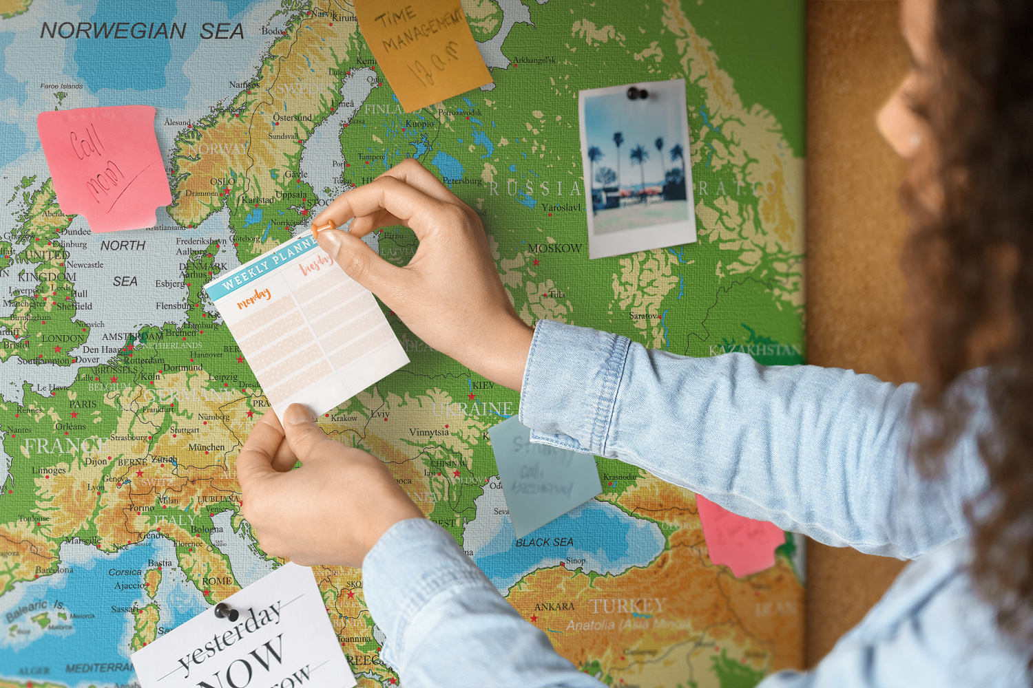 Tablica korkowa 100x70 cm do pracy + pinezki Geografia
