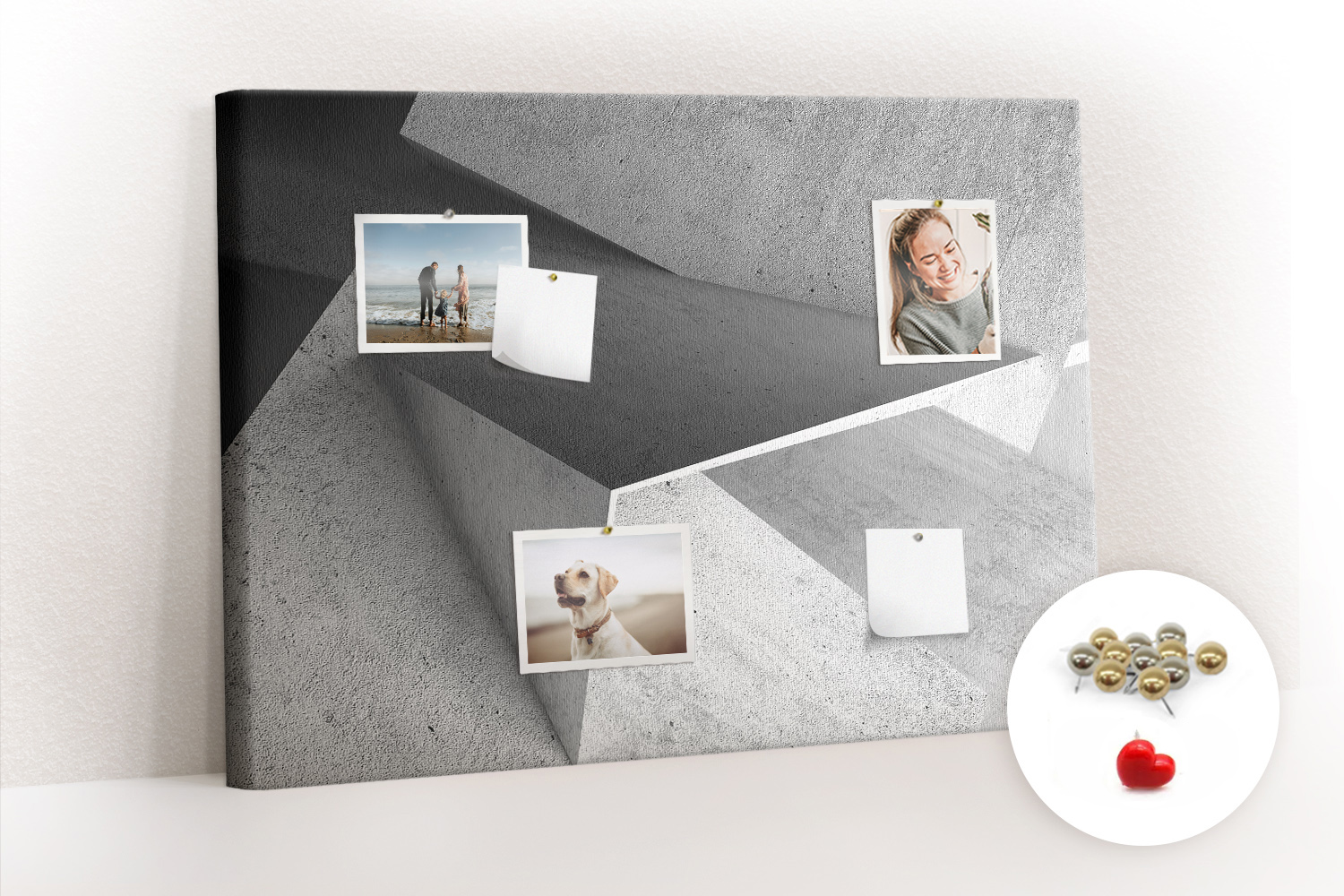 Tablica korkowa z nadrukiem z metalicznymi pinezkami