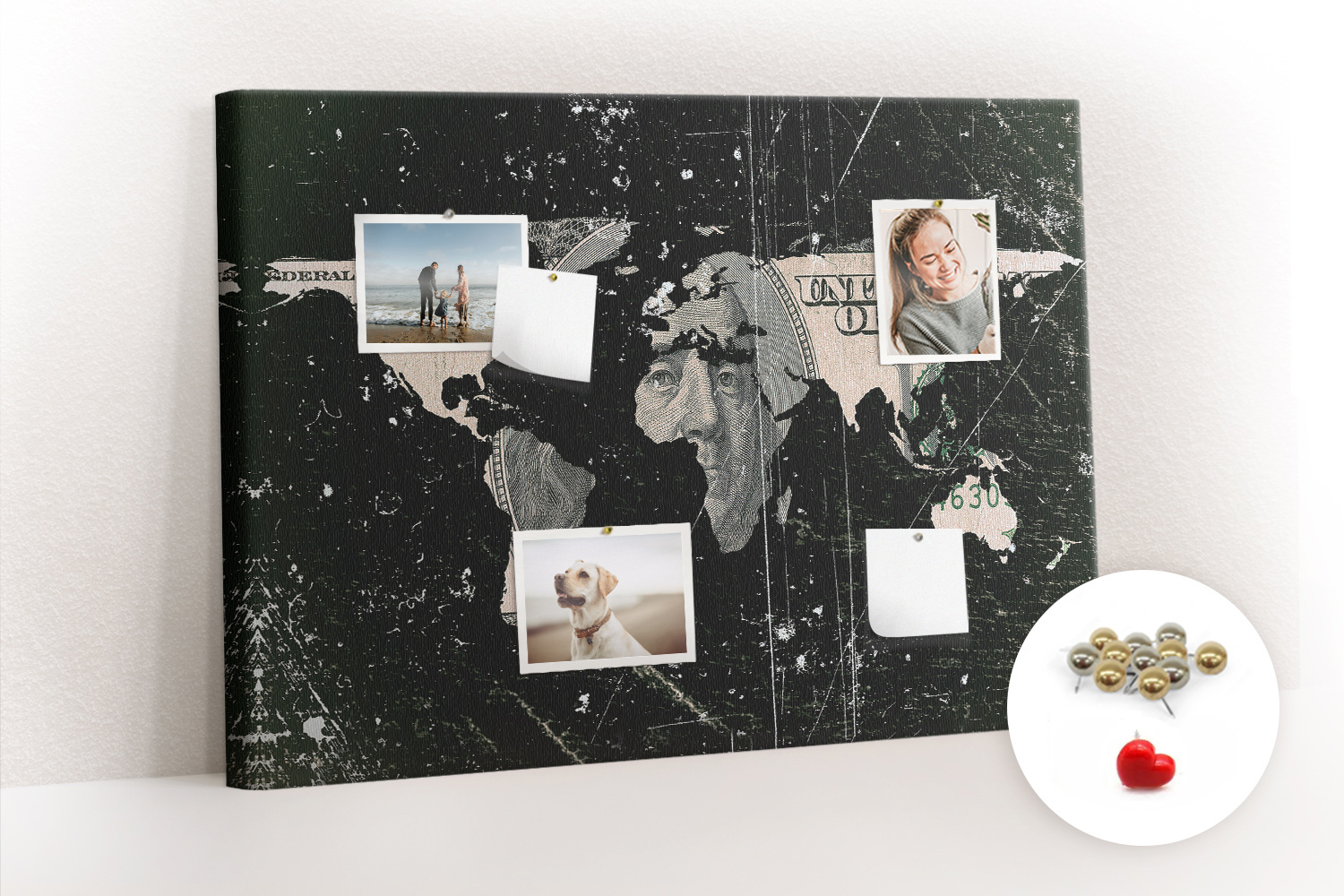 Tablica korkowa z nadrukiem z metalicznymi pinezkami