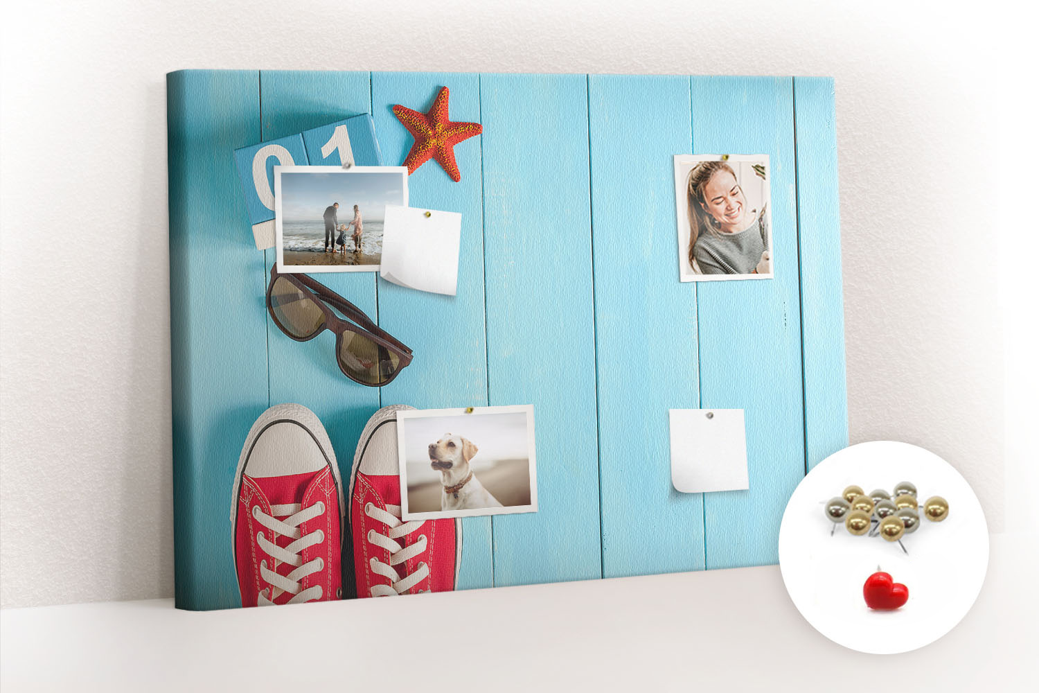 Tablica korkowa 100x70 cm do przedpokoju + pinezki Lato