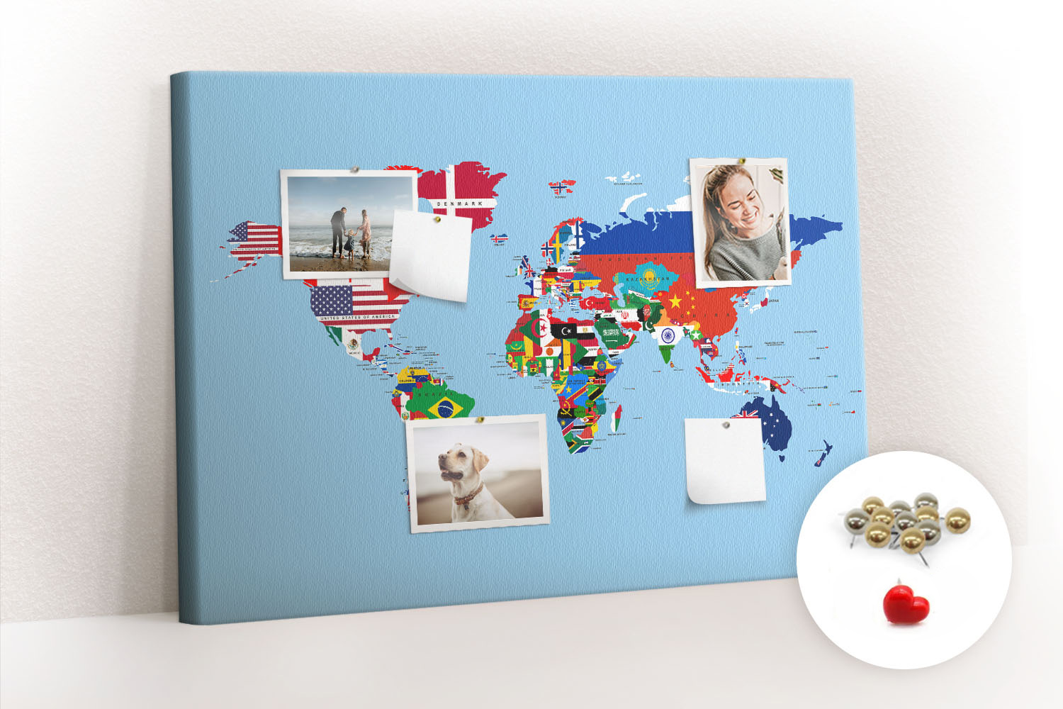 Tablica korkowa 100x70 cm do przedpokoju + pinezki Mapa
