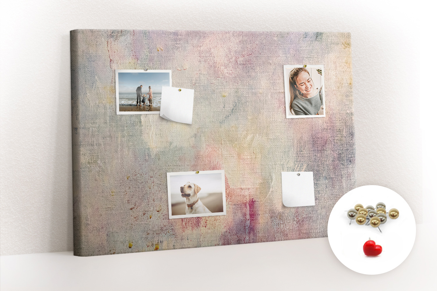 Tablica korkowa z nadrukiem z metalicznymi pinezkami