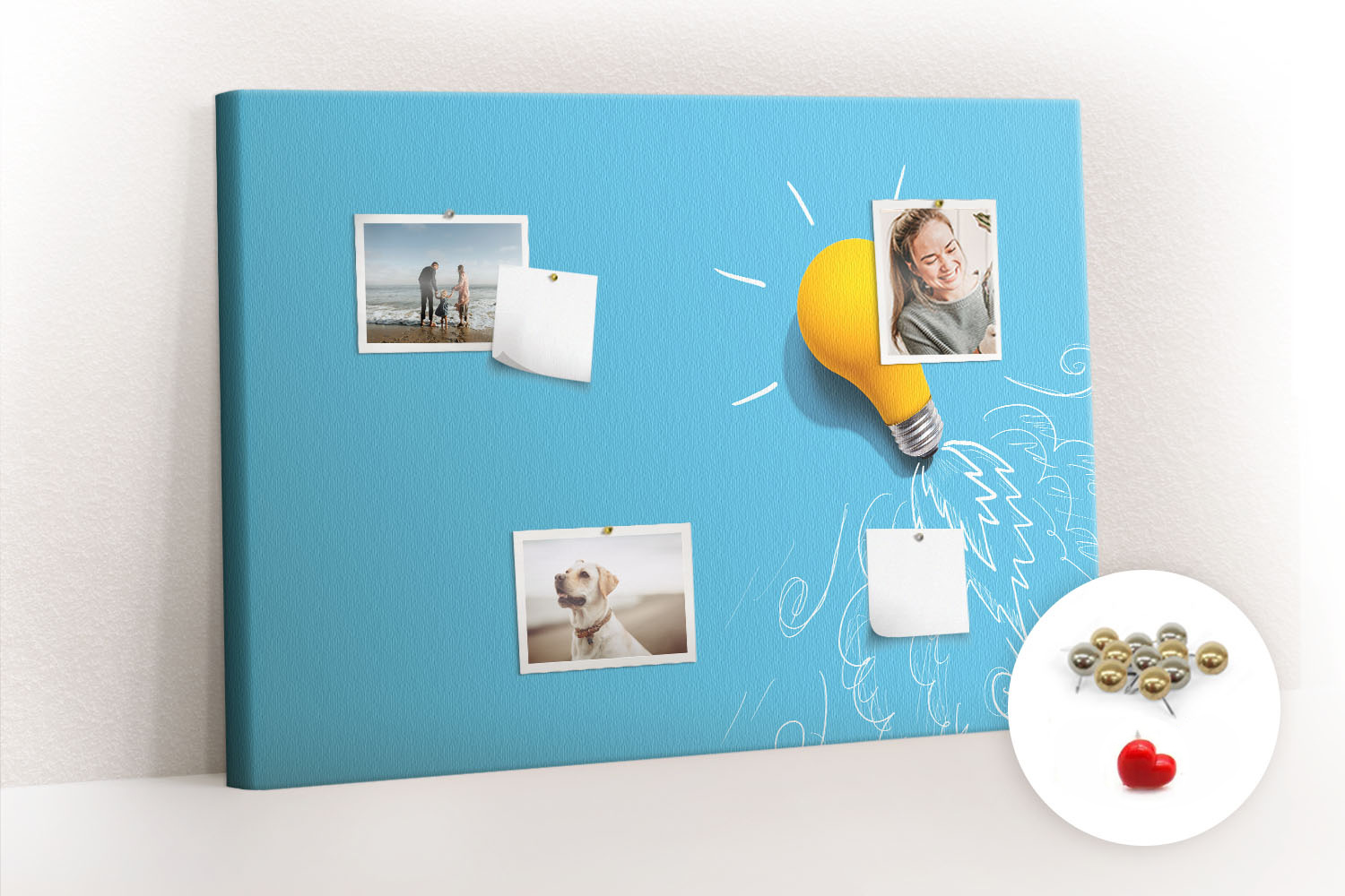 Tablica korkowa 100x70 cm do przedpokoju + pinezki Żarówka