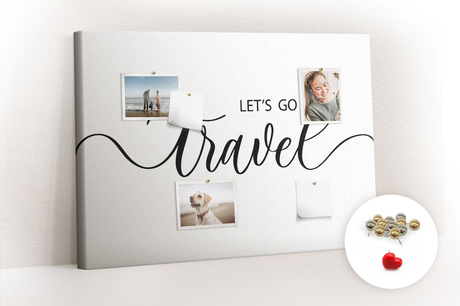 Tablica korkowa z nadrukiem z metalicznymi pinezkami