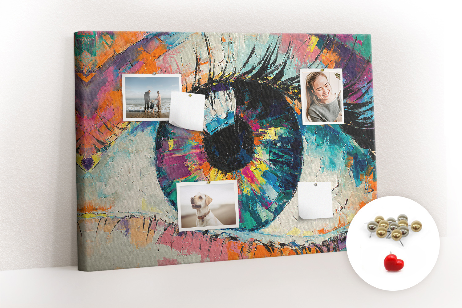 Tablica korkowa z nadrukiem z metalicznymi pinezkami