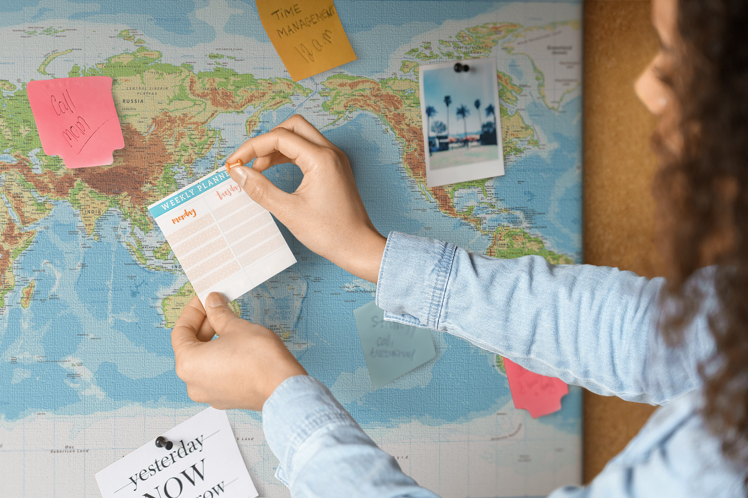Tablica korkowa 100x70 cm do sypialni + pinezki Planer