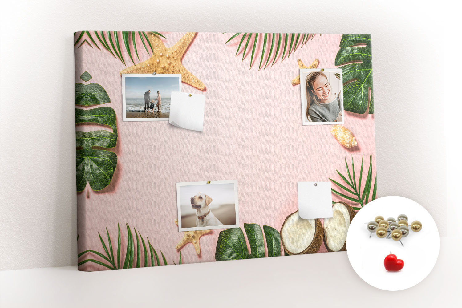 Tablica korkowa z nadrukiem z metalicznymi pinezkami