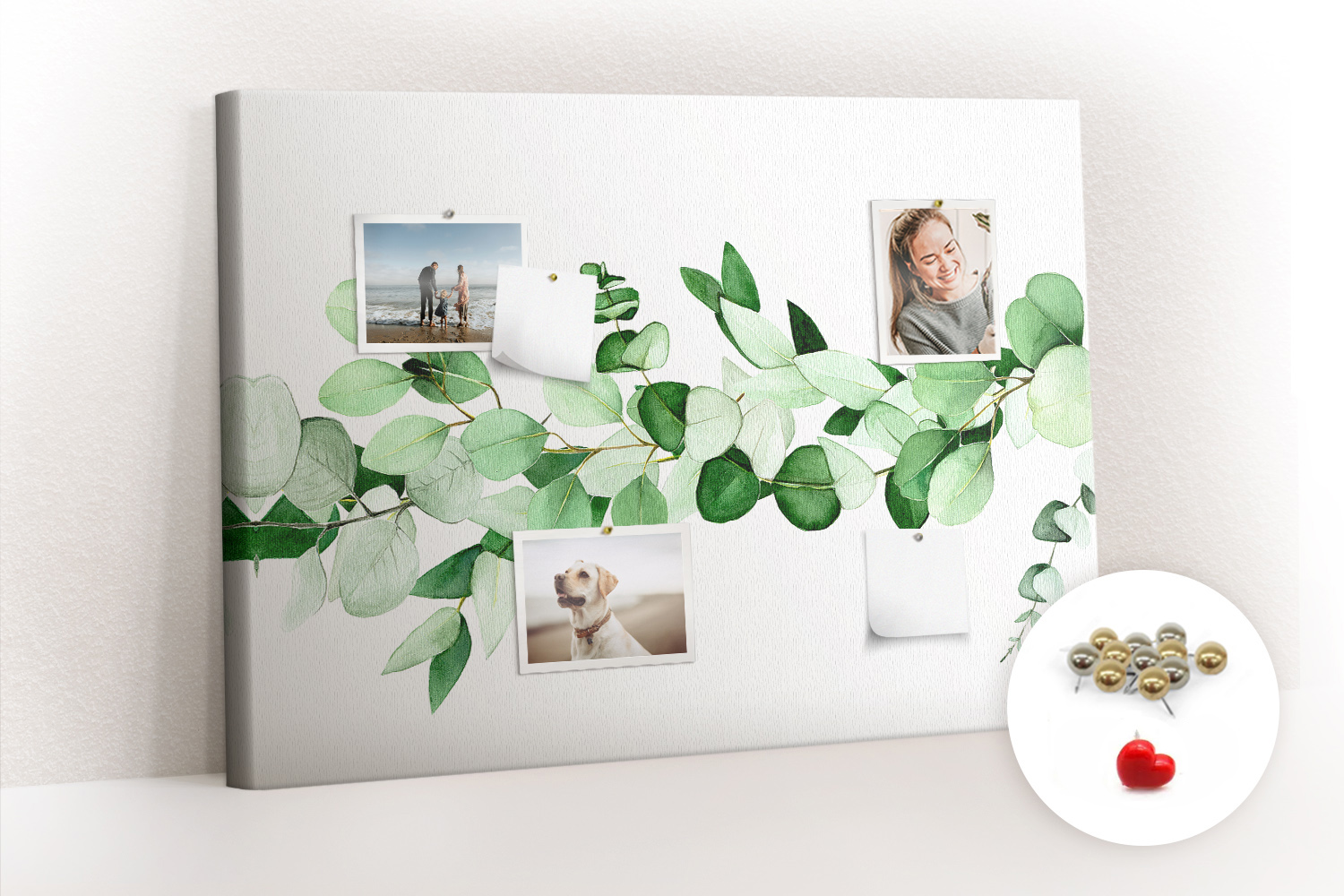 Tablica korkowa z nadrukiem z metalicznymi pinezkami