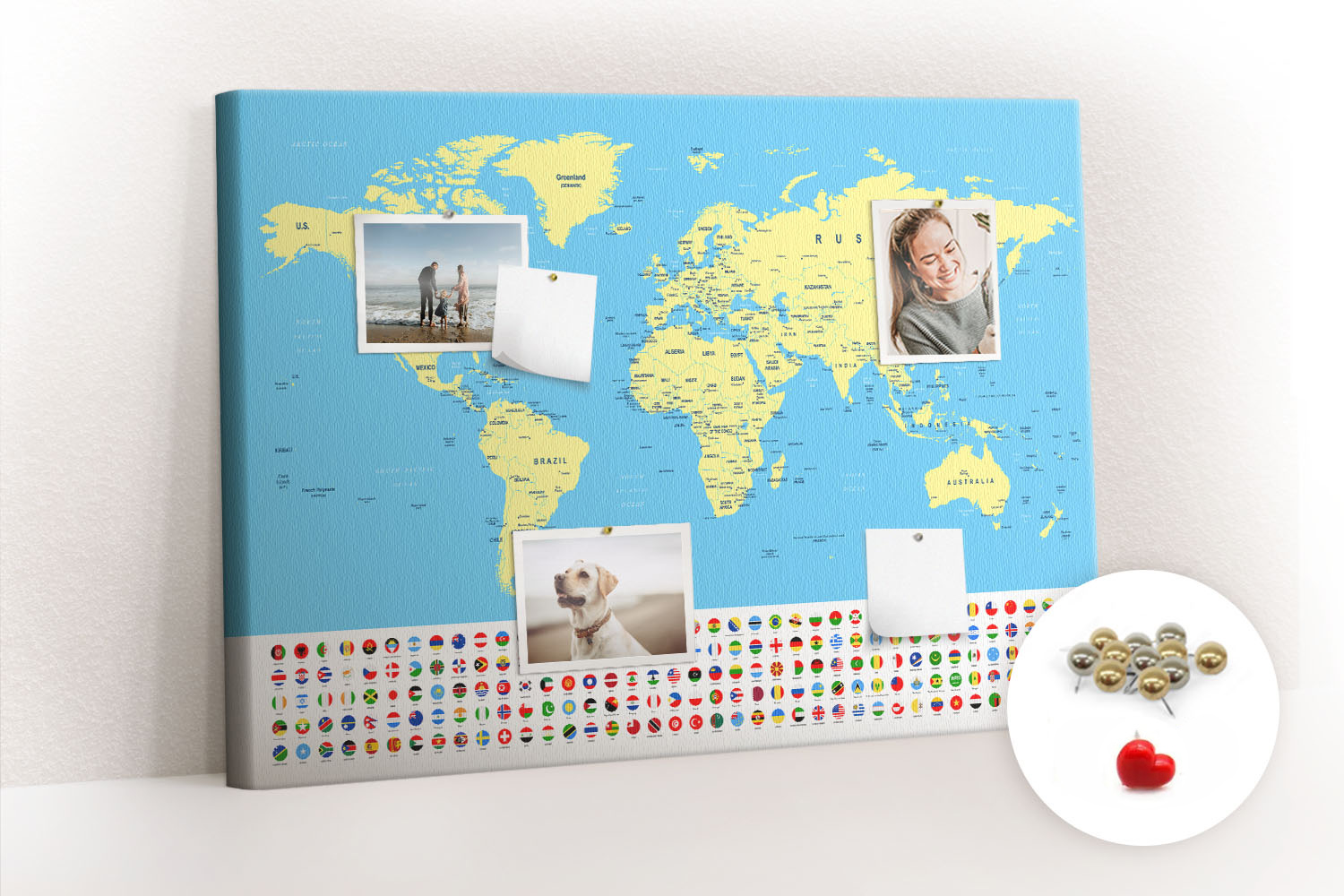 ? Kupując produkt otrzymujesz tablicę z pinezkami pokazanymi na miniaturce.