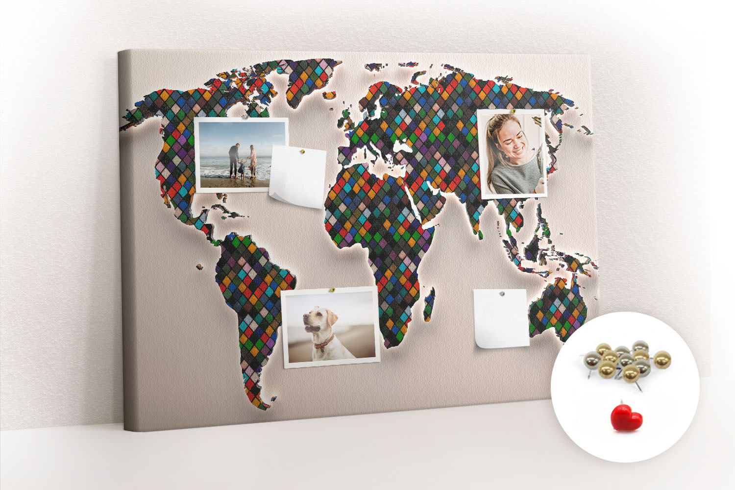 ? Kupując produkt otrzymujesz tablicę z pinezkami pokazanymi na miniaturce.