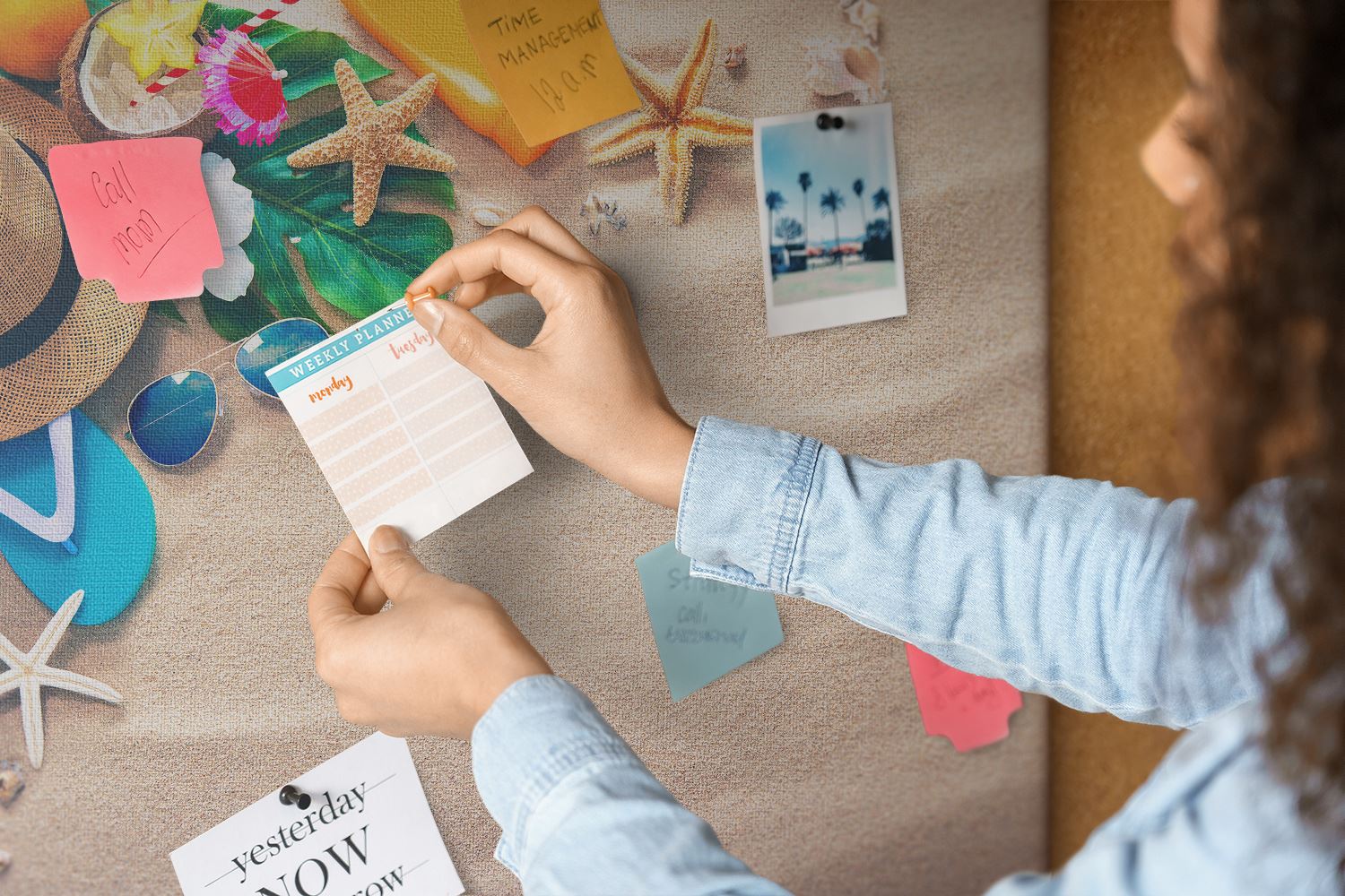 Tablica korkowa 100x70 cm planer + pinezki Egzotyczne lato, 2785092
