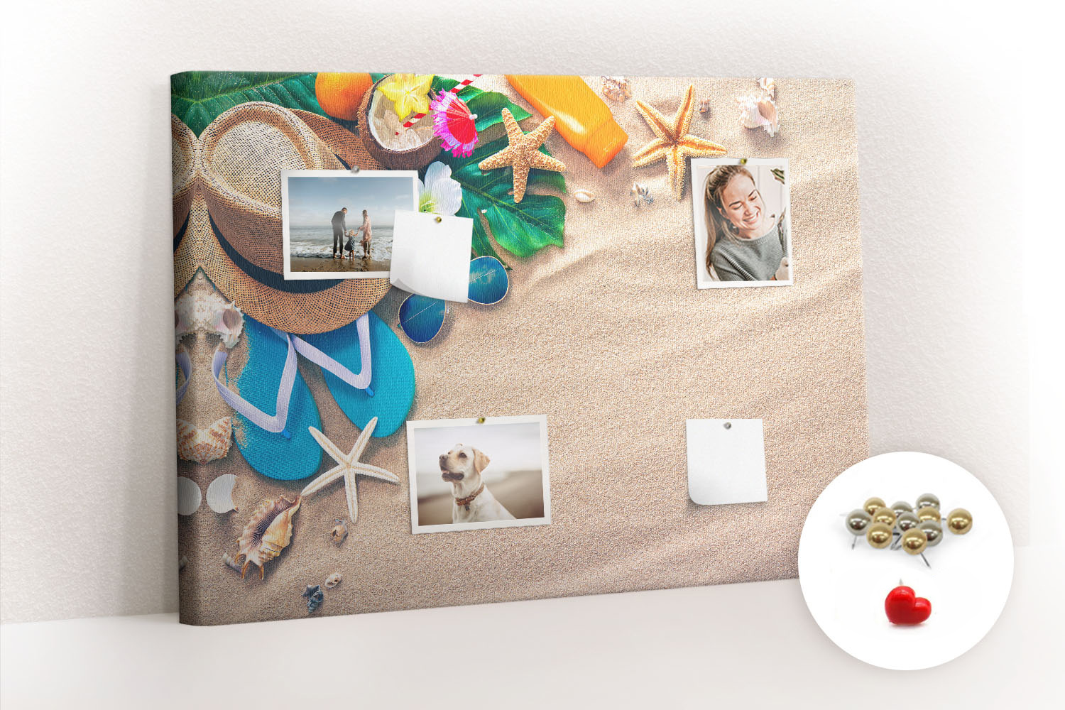 Tablica korkowa z nadrukiem z metalicznymi pinezkami