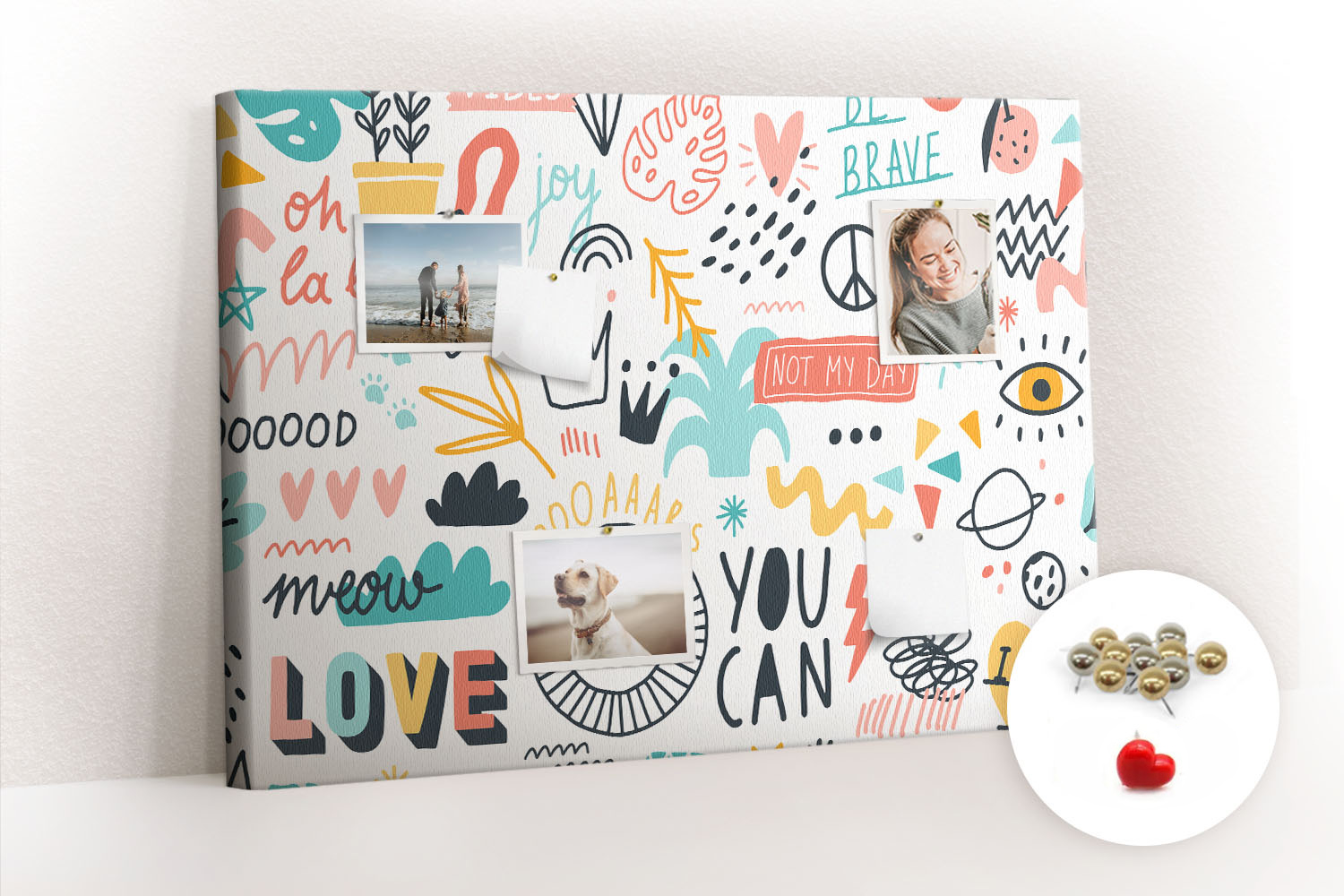 Nadruk na tablicy korkowej jest dostosowywany do Twoich preferencji. Możesz wybrać spośród szerokiej gamy wzorów, motywów, kolorów oraz rozmiarów.