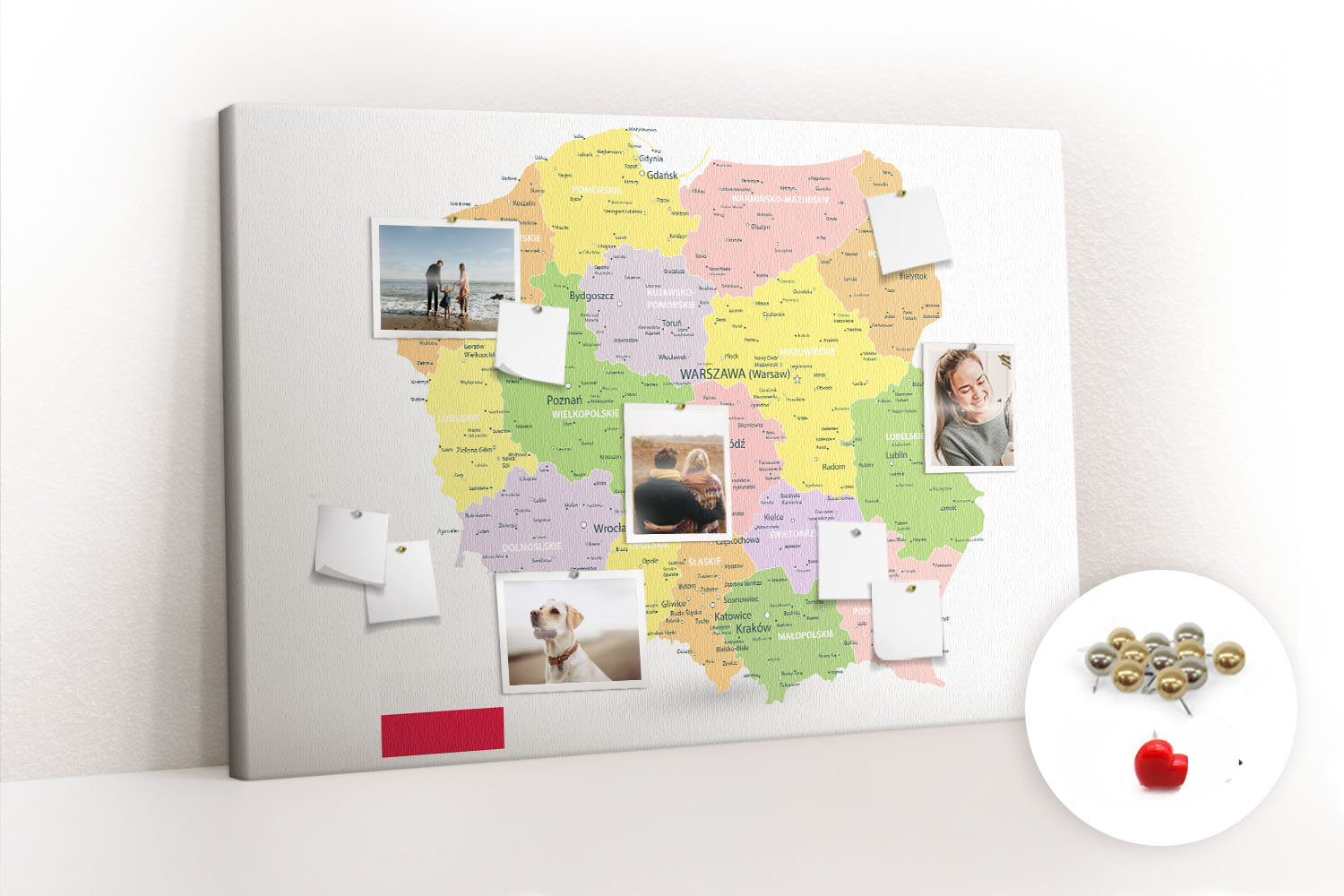 ? Kupując produkt otrzymujesz tablicę z pinezkami pokazanymi na miniaturce.