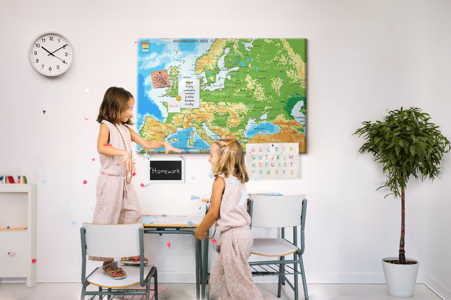 Tablica korkowa 120x80 cm do pracy + pinezki Geografia