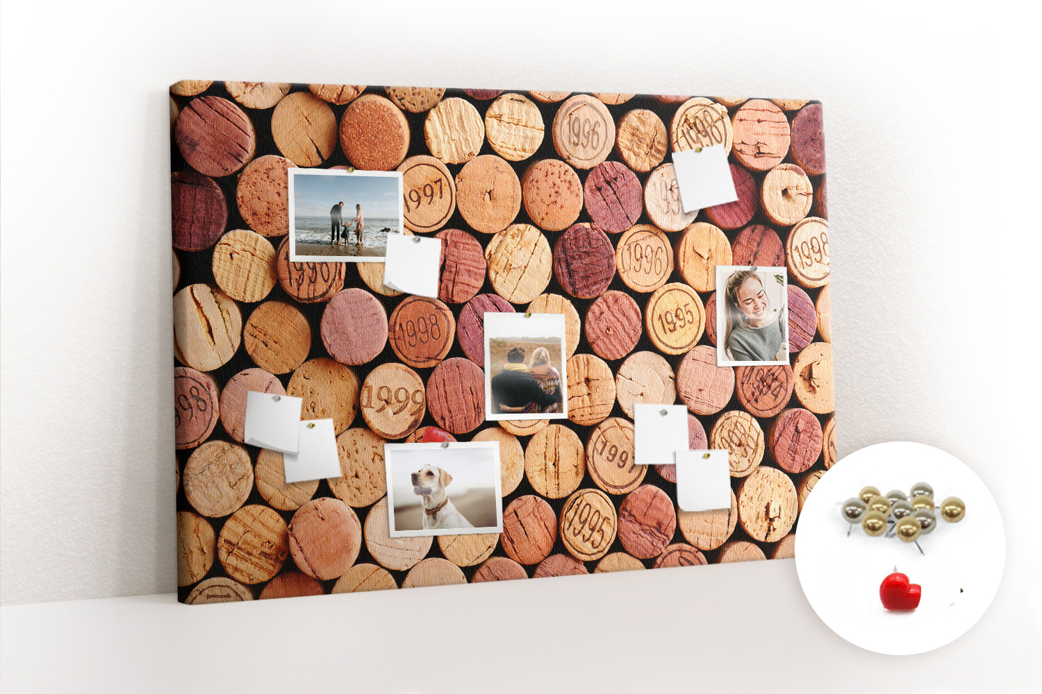 Tablica korkowa z nadrukiem z metalicznymi pinezkami