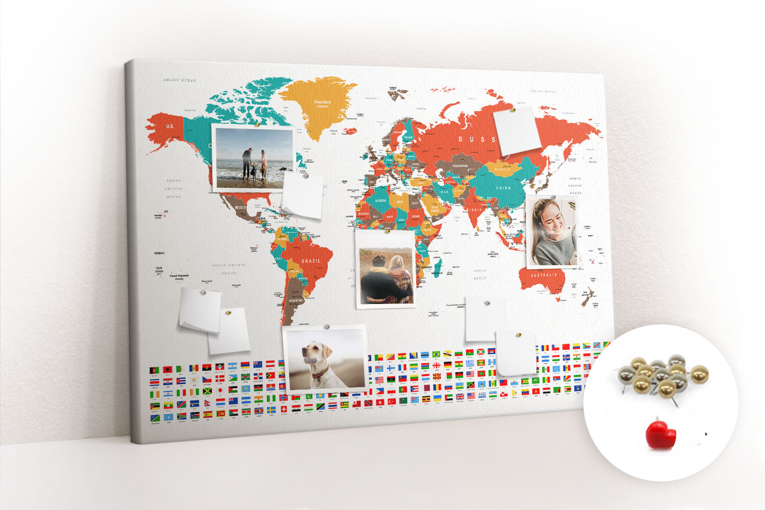 ? Kupując produkt otrzymujesz tablicę z pinezkami pokazanymi na miniaturce.