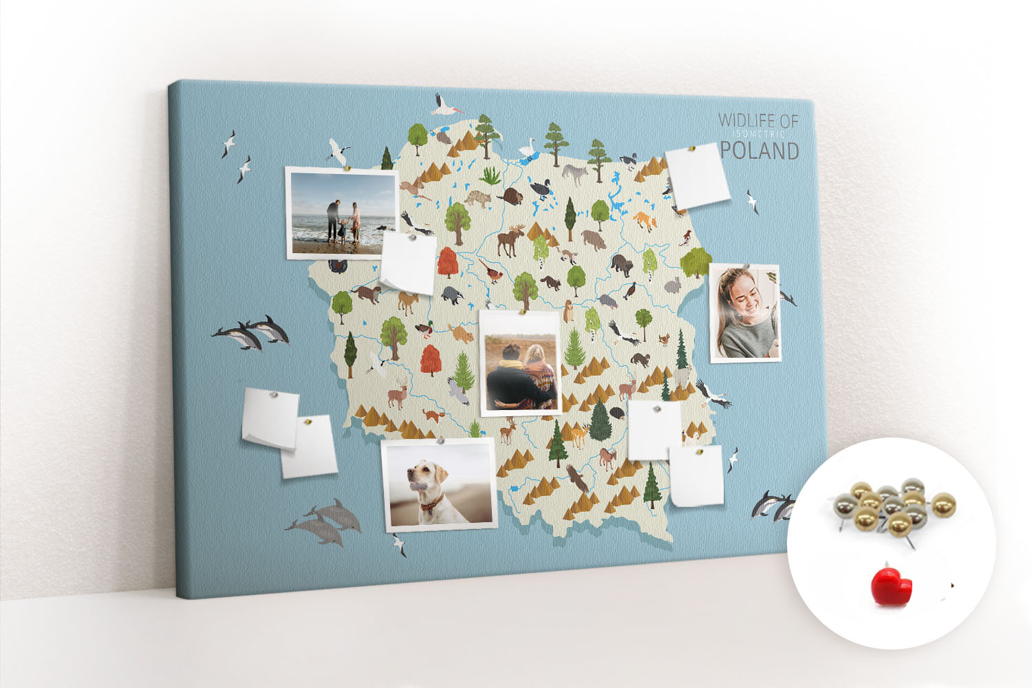 ? Kupując produkt otrzymujesz tablicę z pinezkami pokazanymi na miniaturce.