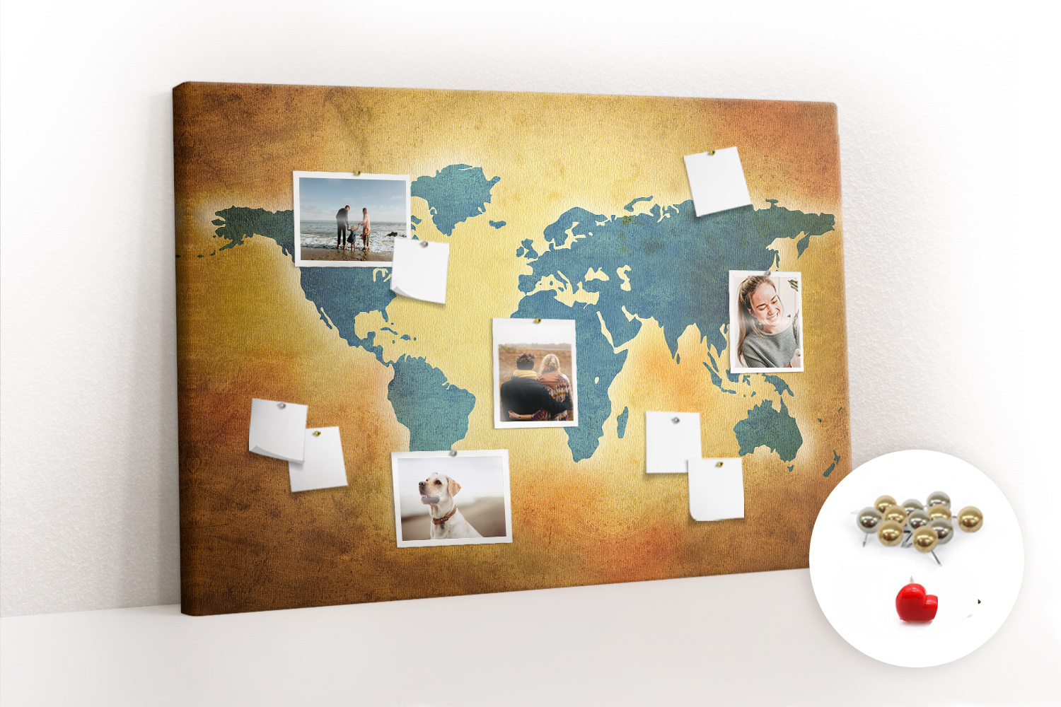 Tablica korkowa 120x80 cm do sypialni + pinezki Mapa