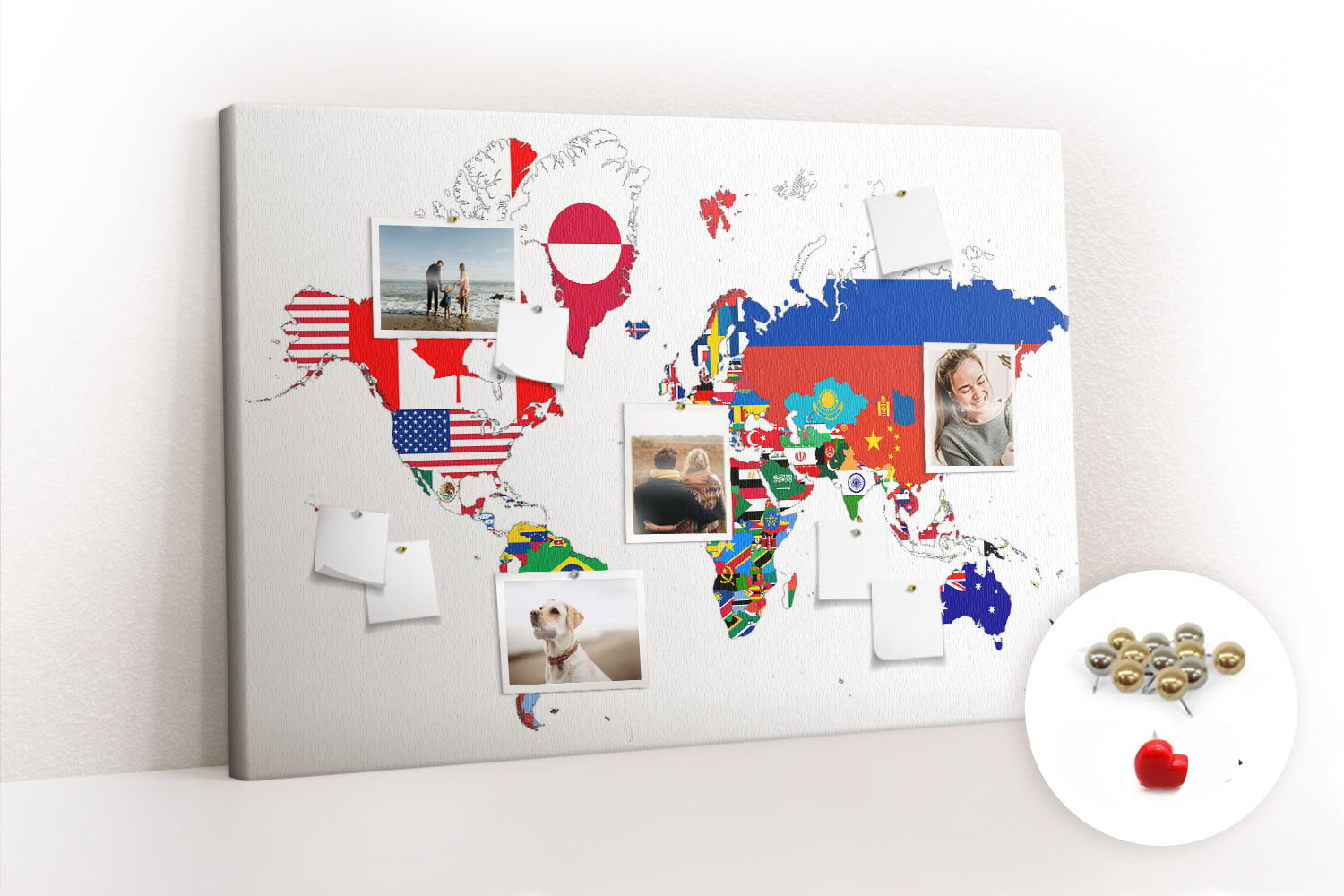 ? Kupując produkt otrzymujesz tablicę z pinezkami pokazanymi na miniaturce.