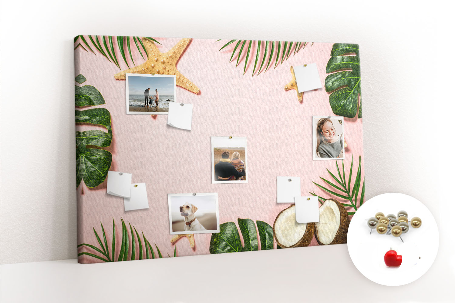 Tablica korkowa z nadrukiem z metalicznymi pinezkami