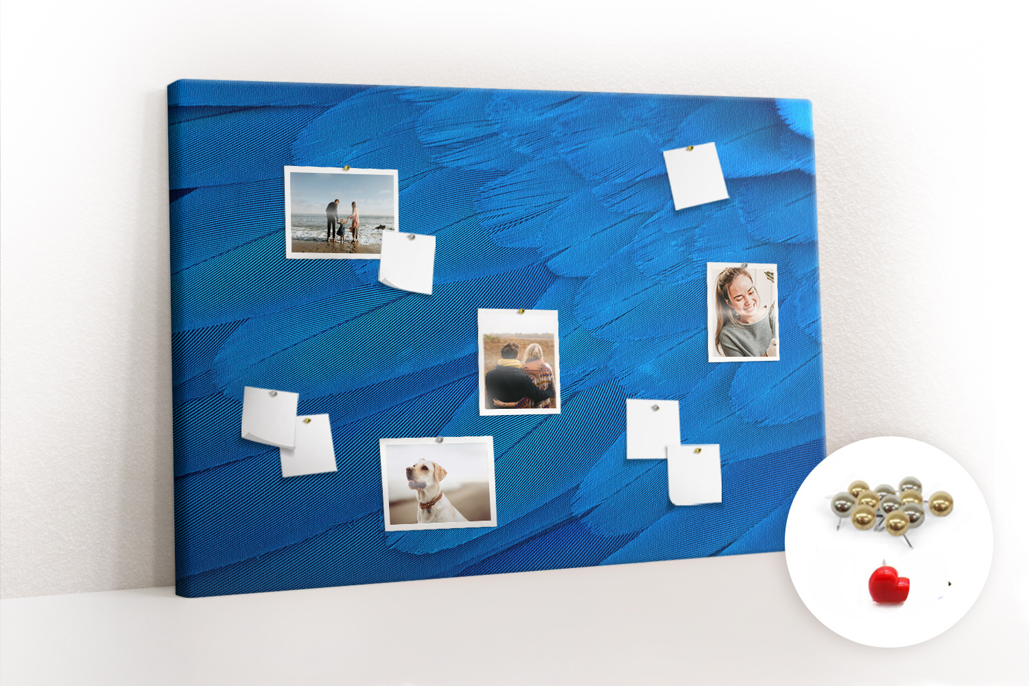 Tablica korkowa z nadrukiem z metalicznymi pinezkami