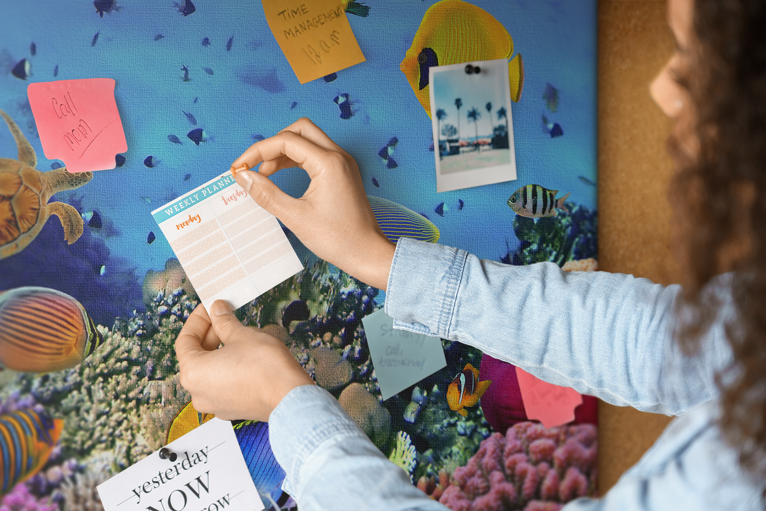 Nadruk na tablicy korkowej jest dostosowywany do Twoich preferencji. Możesz wybrać spośród szerokiej gamy wzorów, motywów, kolorów oraz rozmiarów.