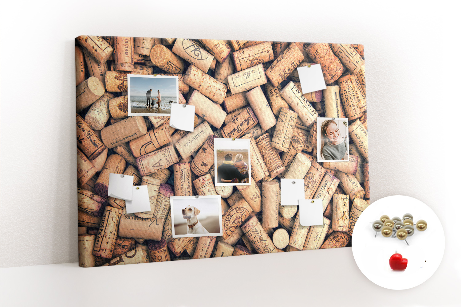Tablica korkowa z nadrukiem z metalicznymi pinezkami
