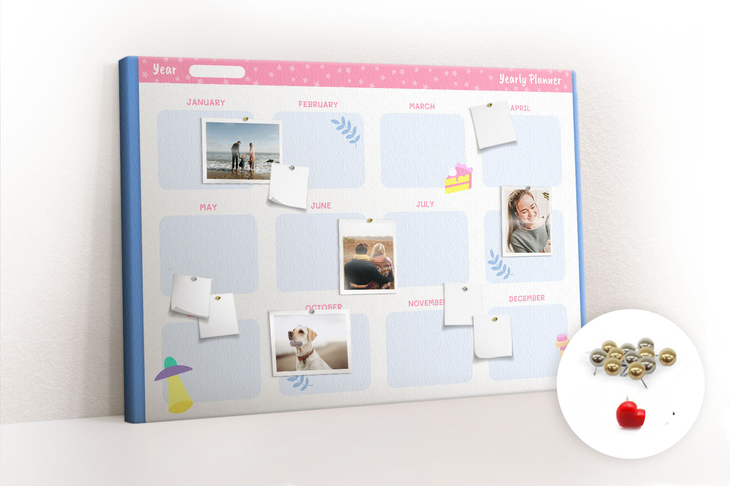 Nadruk na tablicy korkowej jest dostosowywany do Twoich preferencji. Możesz wybrać spośród szerokiej gamy wzorów, motywów, kolorów oraz rozmiarów.