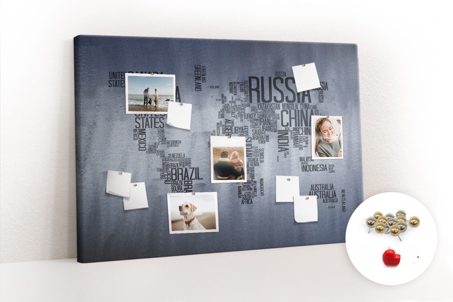 ? Kupując produkt otrzymujesz tablicę z pinezkami pokazanymi na miniaturce.