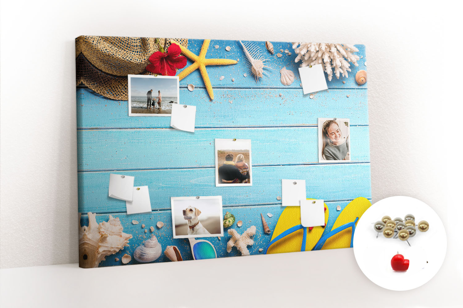 Tablica korkowa z nadrukiem z metalicznymi pinezkami
