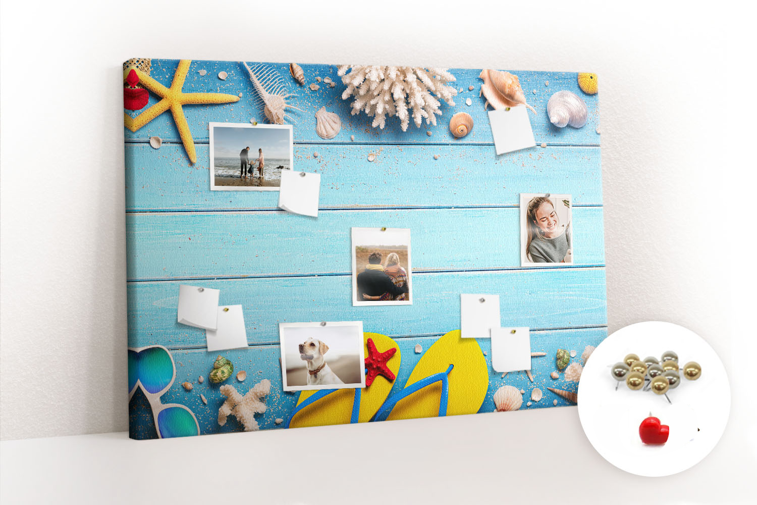 Tablica korkowa z nadrukiem z metalicznymi pinezkami