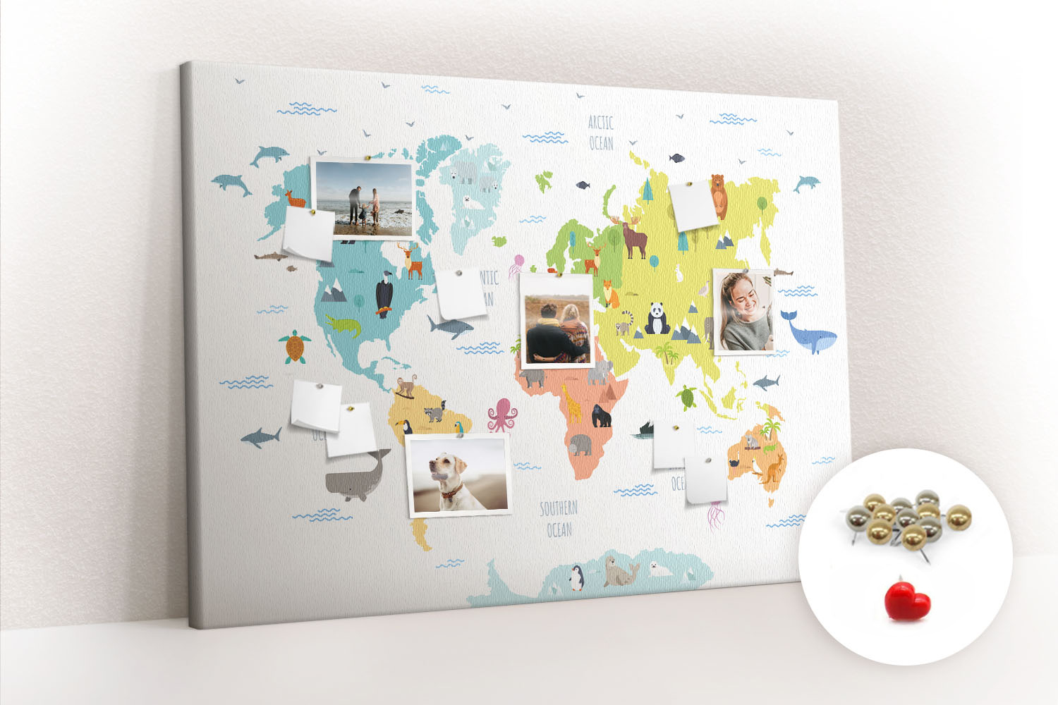 ? Kupując produkt otrzymujesz tablicę z pinezkami pokazanymi na miniaturce.