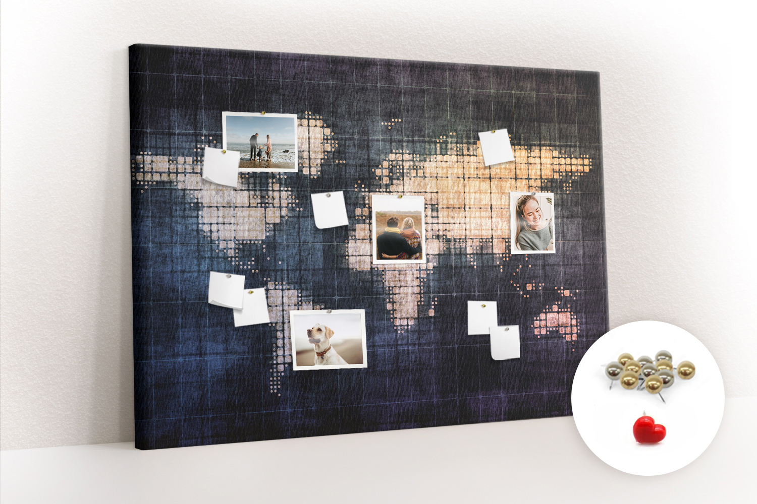 ? Kupując produkt otrzymujesz tablicę z pinezkami pokazanymi na miniaturce.