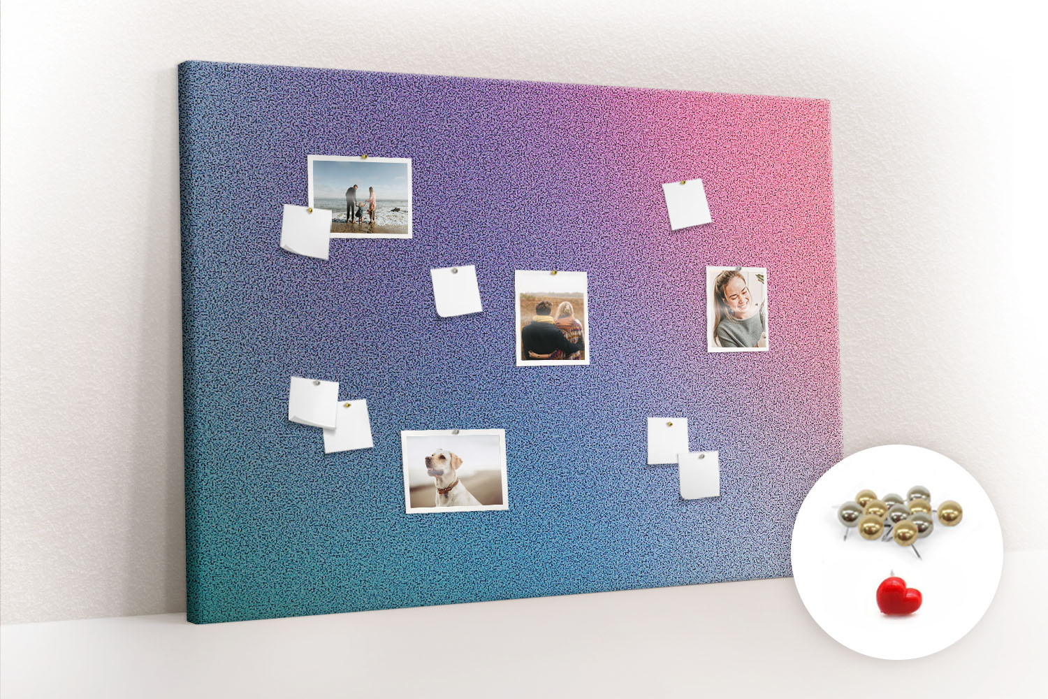 Nadruk na tablicy korkowej jest dostosowywany do Twoich preferencji. Możesz wybrać spośród szerokiej gamy wzorów, motywów, kolorów oraz rozmiarów.