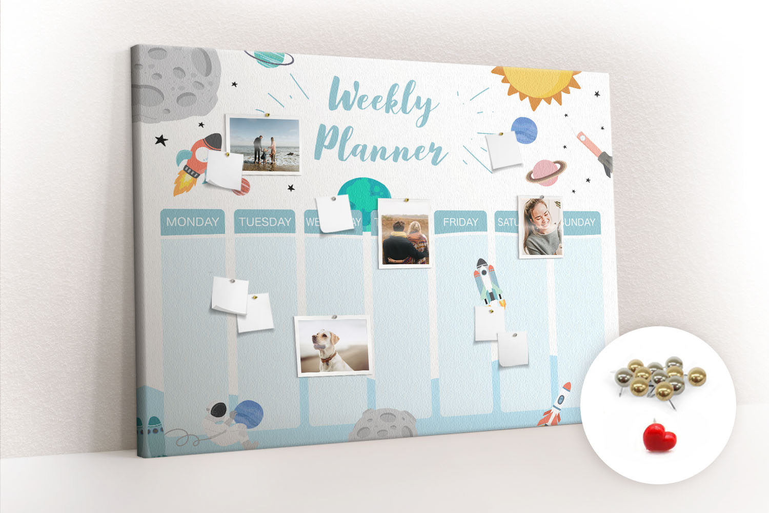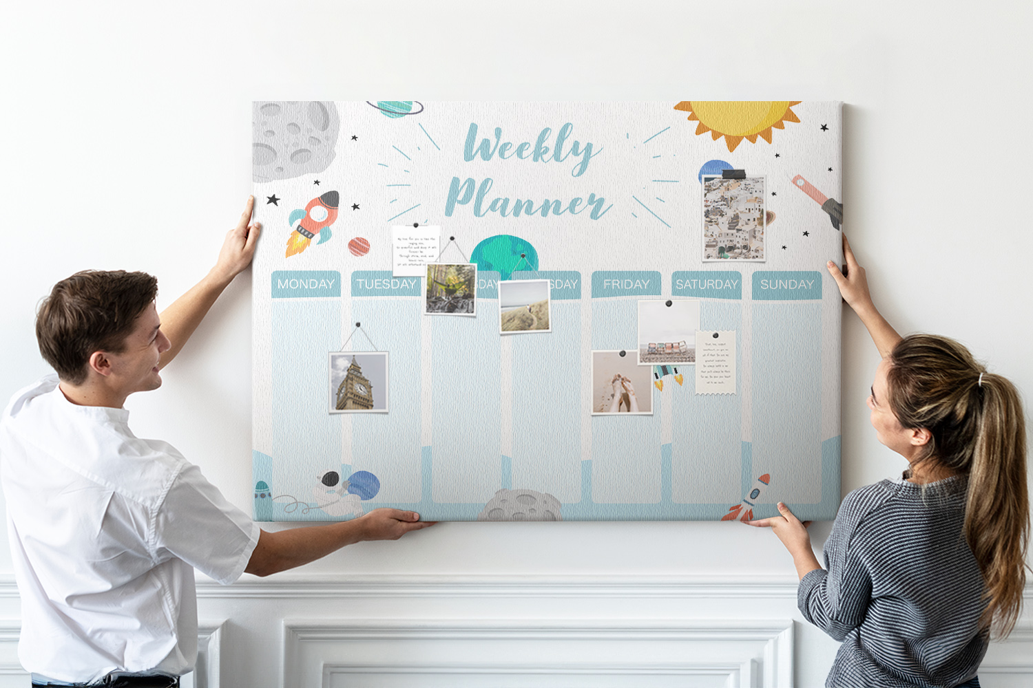 Nadruk na tablicy korkowej jest dostosowywany do Twoich preferencji. Możesz wybrać spośród szerokiej gamy wzorów, motywów, kolorów oraz rozmiarów.