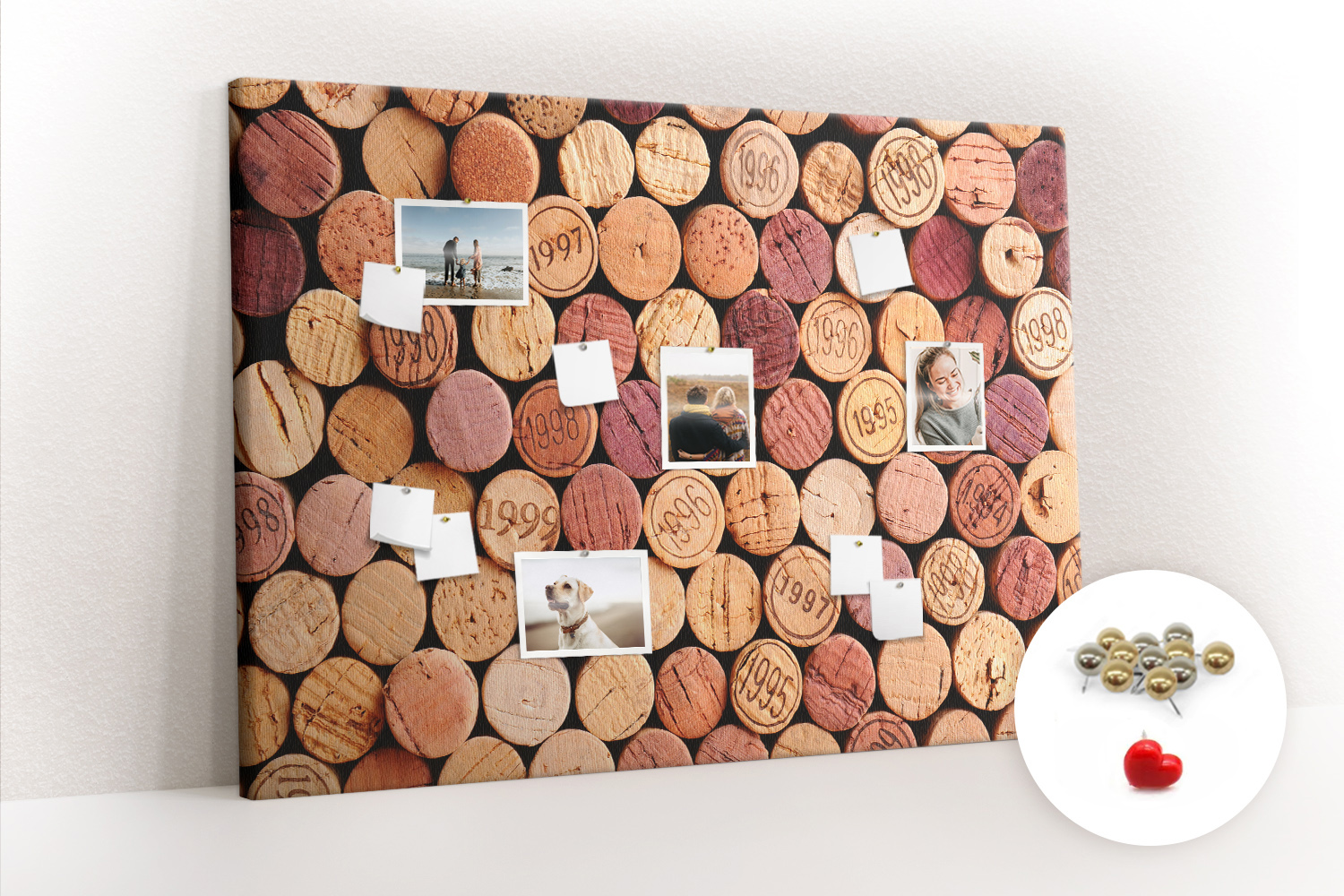 Tablica korkowa z nadrukiem z metalicznymi pinezkami