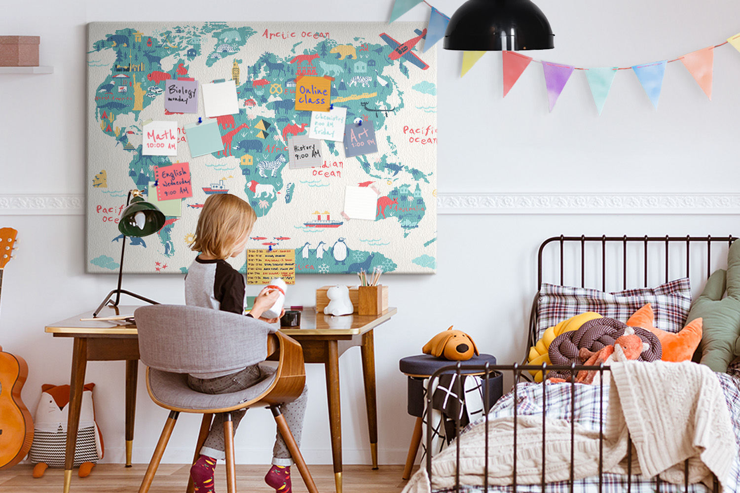 Tablica korkowa 140x100 cm do pracy + pinezki Mapa świata