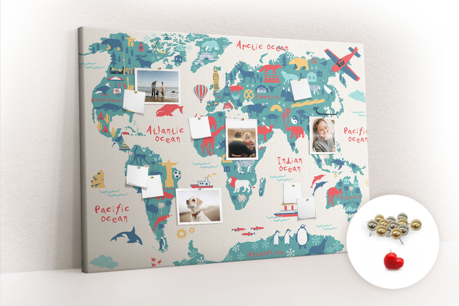 ? Kupując produkt otrzymujesz tablicę z pinezkami pokazanymi na miniaturce.