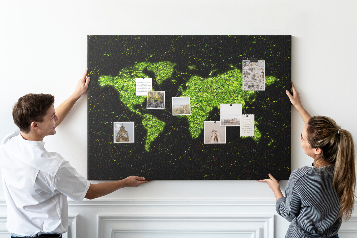 Tablica korkowa 140x100 cm do salonu + pinezki Mapa śwata