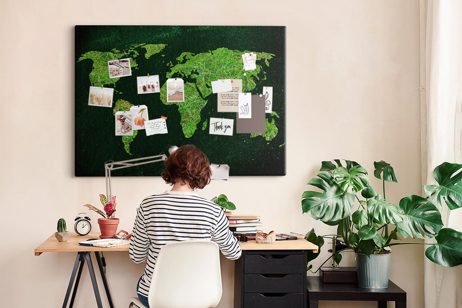 Tablica korkowa 140x100 cm do salonu + pinezki Mapa świata