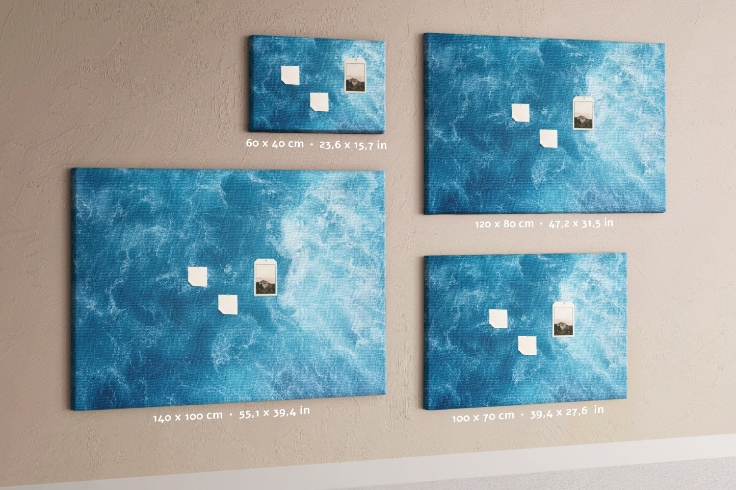 Nadruk na tablicy korkowej jest dostosowywany do Twoich preferencji. Możesz wybrać spośród szerokiej gamy wzorów, motywów, kolorów oraz rozmiarów.