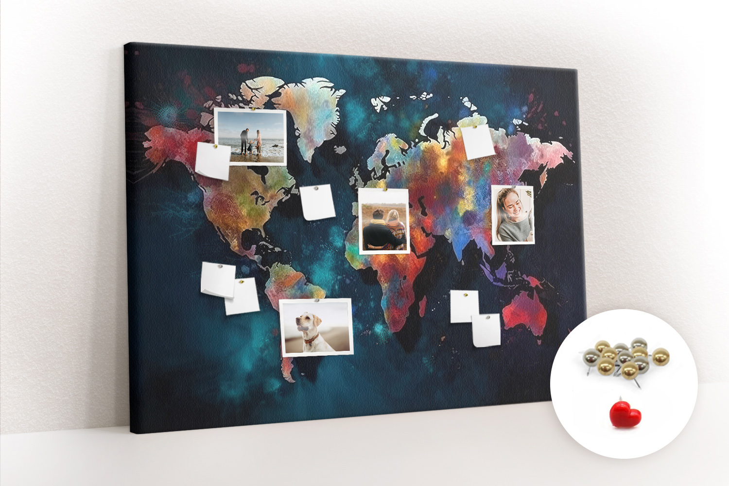 Tablica korkowa 140x100 cm do sypialni + pinezki Mapa