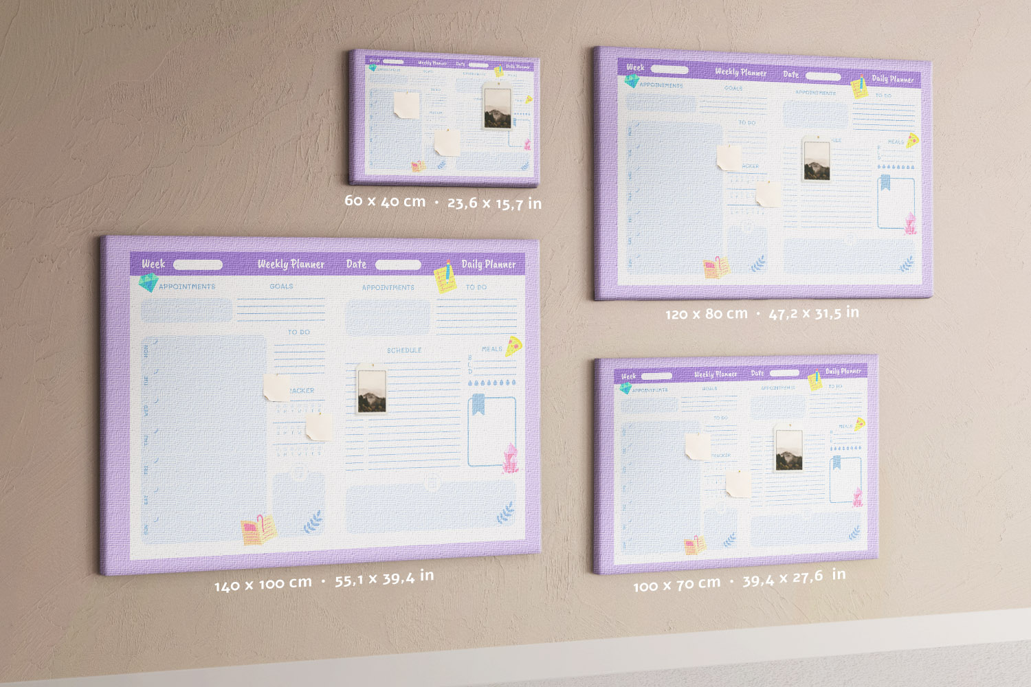 Nadruk na tablicy korkowej jest dostosowywany do Twoich preferencji. Możesz wybrać spośród szerokiej gamy wzorów, motywów, kolorów oraz rozmiarów.