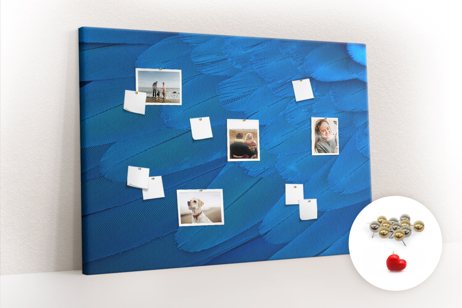Tablica korkowa z nadrukiem z metalicznymi pinezkami