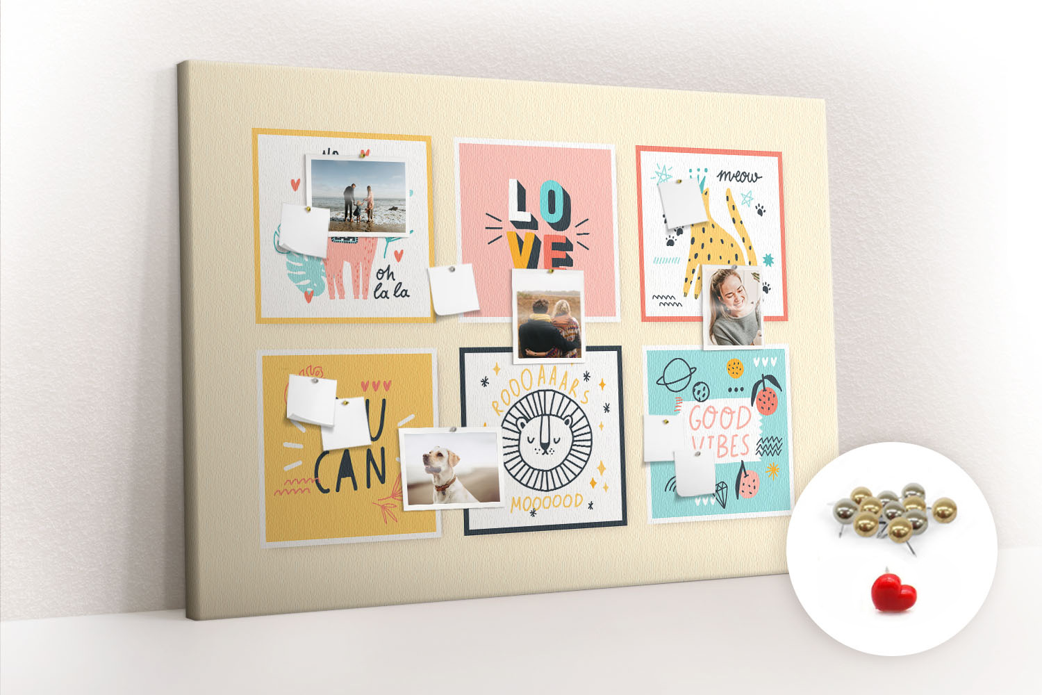 Nadruk na tablicy korkowej jest dostosowywany do Twoich preferencji. Możesz wybrać spośród szerokiej gamy wzorów, motywów, kolorów oraz rozmiarów.